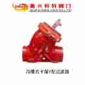 G81H沟槽式卡箍过滤器 过滤面积大、流阻系数小、下端部装有自由冲洗装置,冲洗时间快比一般Y型过滤快 8~10 倍。阀体内外采用无毒性的粉体环氧树脂喷涂,使水质不至于出现缺水及阀体的腐蚀。过滤网采用不锈钢,在使用过程中不会出现滤网结锈而减少过滤面积。本阀具有双向密封功能,安装时不受介质流向的限制,也不受空间位置的影响,可在任何方向安装。