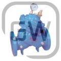 DY30BX缓开快闭止回阀它包括阀体内设阀座、阀杆、以及与阀体连接的上阀盖与下阀盖等零件组成。上阀盖与下阀盖之间为隔膜腔,隔膜腔内设隔膜,隔膜与中心轴连接,中心轴另一端连接阀门,阀门与阀座接触。水容器与上阀盖进水、出水控制孔连通,水容器与上阀盖出水为节流连通,水容器与上阀盖进水为单向连通。该阀缓慢开启,防止电流冲击及官网中压力冲击;快速关闭,防止水锤产生。无水质要求,可用于污水、清水及原水系统。